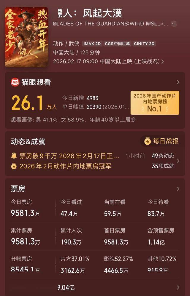 《镖人》不知道后续口碑咋样,小凉认为,10亿的预测票房还是低估了这部电影,电影票房的拉锯战才刚刚开始,让我们拭目以待!