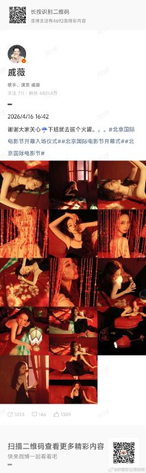 面对全网玩梗,戚薇在当天下午便亲自下场回应。她在个人微博发布红毯后台花絮视频,配文“听劝!下班立刻安排拔罐”,并带话题#戚薇北影节后就去拔个火罐#同步互动。直播中被问及此事时,她更是调侃道:“网友都给我‘下单’了,必须安排上!不过得先问问中医师傅,这么好看的背该拔多少罐才不浪费?”这种“把红毯变养生订单”的反差操作,既化解了外貌评价的压力,又以自嘲拉近了与公众的距离。媒体“西柚电影”精准总结:“别人红毯争奇斗艳,戚薇红毯接‘养生订单’——她把明星光环活成了生活喜剧。”