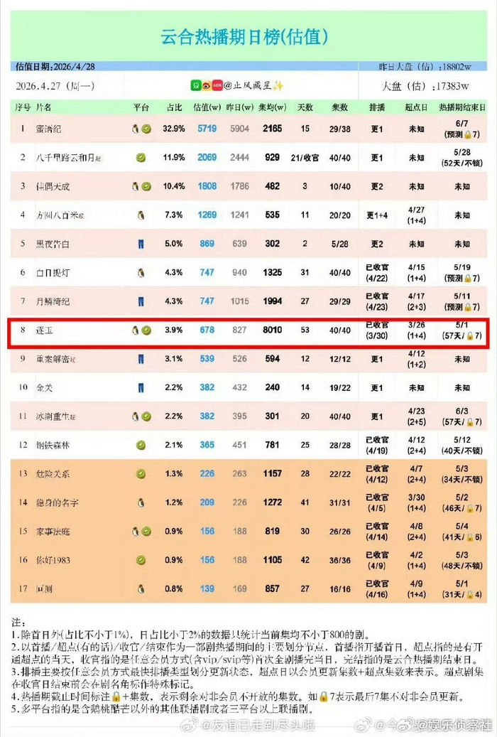 逐玉集均8000万,逐玉真的好🐮,张凌赫vs田曦薇好扛剧啊!!