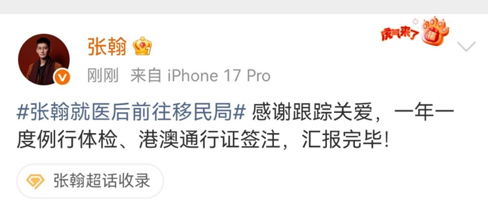 #张翰回应移民局行程##张翰去移民局办理港澳通行证#