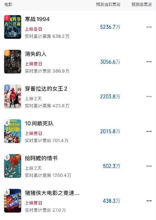 《给阿嬷的情书》1亿。温情片五一档有空间,但竞争太激烈,能守住1亿就算胜利。