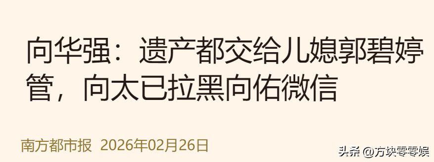 南方都市报——向华强:遗产都交给儿媳郭碧婷管,向太已拉黑向佑微信