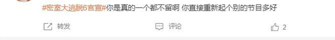 因此在《密逃6》官宣回归后,即便没有公布常驻阵容,评论区也直接被吐槽刷屏,在很多老粉看来,杨幂和黄明昊退出后,这档节目的嘉宾就全部换人了,这档节目的情怀也就没有了,大部分都表示被阵容劝退,大概率是不会再看最新一季节目了。