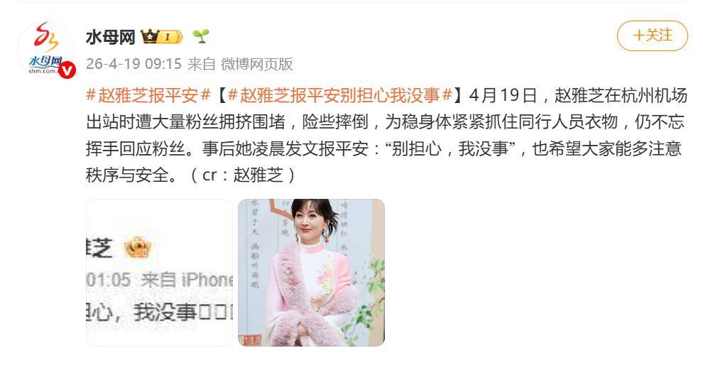 这惊险一幕迅速引发网络关切。事发后,赵雅芝于凌晨第一时间通过个人微博发文报平安,一句简短的“别担心,我没事”,安抚广大粉丝的担忧情绪。