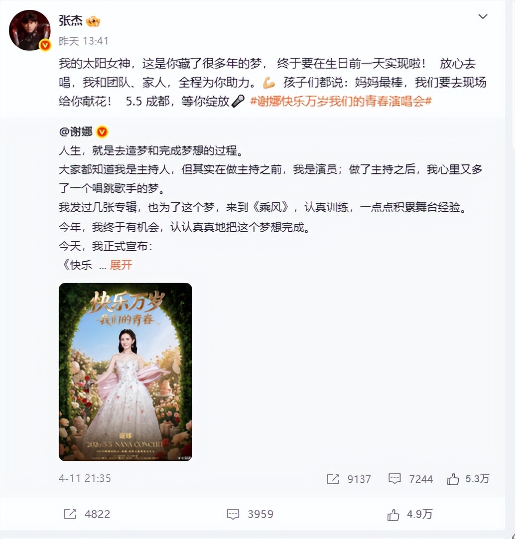 本以为风波过后会收敛,没想到才过几个月,谢娜紧接着官宣演唱会。