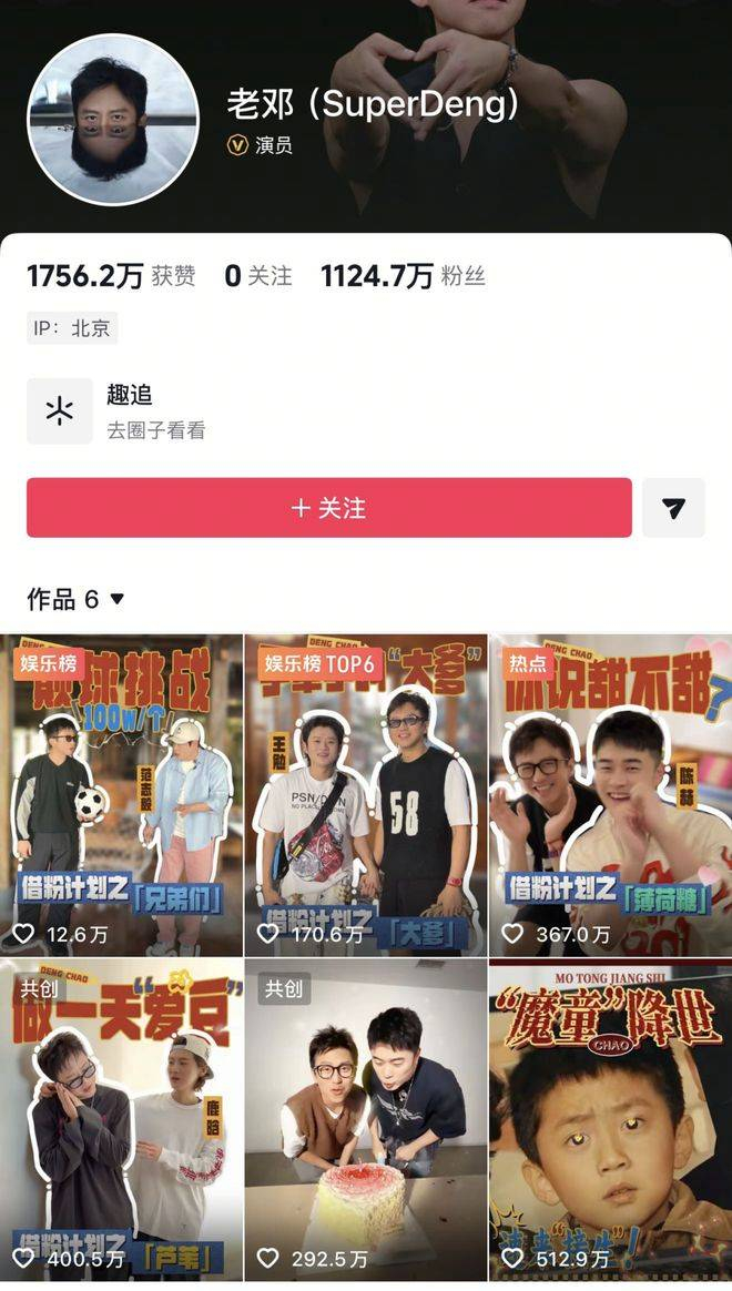 2月6日,邓超正式宣布入驻某短视频平台,账号名为老邓(SuperDeng),尽管还没有发布任何内容,他的账号却瞬间引发了全网热议,粉丝数仅在一晚之间便突破了百万。网友们纷纷涌入评论区,期待着老邓头尽快发布首个视频,甚至有网友戏谑道:老邓头快发抖音。而就在2月8日,邓超迎来了自己47岁的生日,他也终于在这一特殊的日子里发布了第一条视频,配文写道:我重生了,谁来接我?在这条时长2分30秒的视频中,邓超借助AI技术,延续了他一贯的搞怪风格,用网络热梗进行了一番创意演绎。视频中,他幽默搞笑的表现让网友们纷纷评论:新届抽象生来报道,抽象界迎来了他们的神,甚至有网友表示,观看这个视频的感觉就像是在看一集综艺节目。截止到2月12日11:30,邓超的短视频账号已发布6条视频,最高点赞数突破了500万,粉丝数也已经超过了1100万,他的超高人气引发了全网的广泛关注。