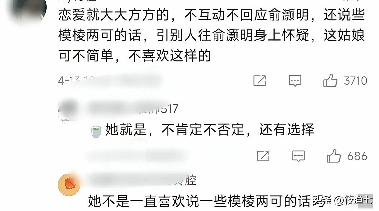 这已经不是王晓晨第一次这样子做了,在之前面对俞灏明的多次公开示爱,王晓晨始终不正面回应恋情,反而用“我头昏了,大家开心就好”来回复,俞灏明的爱在王晓晨这里显得太廉价了。