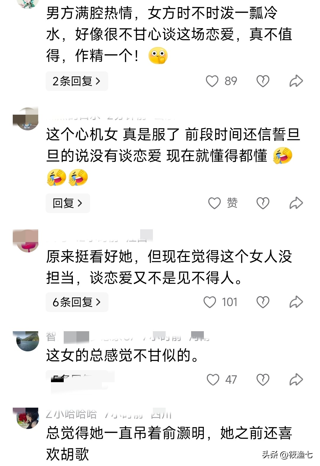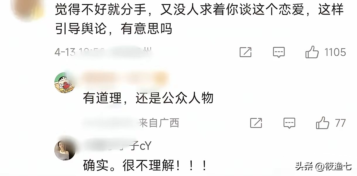 这次王晓晨发文又想要分手的样子,俞灏明满腔热情,王晓晨时不时来一盆冷水,从不回应俞灏明的高调示爱,又处处透着不甘,引来网友的一片声讨。