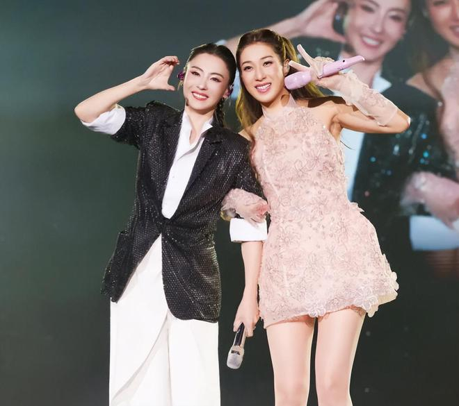 在娱乐圈内,也有朋友,张柏芝就是其中之一,张柏芝现身钟嘉欣演唱会,照片里的她穿黑色西装套装,在舞台上歌唱,状态超好,张柏芝舞台表演超有魅力,状态超好。张柏芝与观众打招呼,张柏芝钟嘉欣贴贴合照,张柏芝对镜比耶。