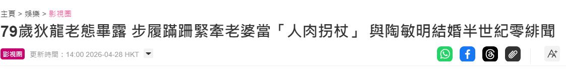 1. **港片老粉**:狄龙这辈子光是为了爱情和家庭,把所有的精力都投入进去了,真的太敬佩了!🍿 ,2. **一代宗师**:50年零绯闻,简直是港片界的奇迹!狄龙和陶敏明的爱情故事,堪比小说里的豪情❤️👍 ,3. **香江美男**:从顶流小生到迟暮老人,狄龙的状态一直都很稳定,真的是一辈子最靠谱的男人!🌟 ,4. **武侠迷**:虽然身体不如从前,但狄龙依然是武侠界的无敌硬汉,爱情和责任才是真正的无敌💪 ,5. **吃瓜小萌**:看到狄龙和陶敏明的照片,真的热泪盈眶!老爱情物语,永远动人❤️🌹 ,6. **港片怀旧**:狄龙的风流情史只有陶敏明,真是太正直了!这份感情,简直是香港影坛的传奇🎥 ,7. **老派情怀**:50年感情,真的太少见了!狄龙和陶敏明的爱情,堪比古装剧里的豪门恩情📖 ,8. **一线大佬**:狄龙虽然身体有所不便,但依然坚持陪伴妻子,真的太感动了!老爱情永远值得尊重❤️ ,9. **港片女粉**:狄龙年轻时的帅气,老了依然稳重,真的是一辈子最顶级的浪漫💯 ,10. **吃瓜高手**:狄龙的爱情故事,简直是吃瓜的经典!50年零绯闻,太让人羡慕了!🍿1. **狄龙的硬汉形象被岁月打败?** , 79岁的狄龙,依然风风光光,虽然脚步虚浮,但眼里依然闪耀着昔日的霸气!这辈子最硬的硬汉,还是被爱情和岁月温柔了。,2. **“香江第一美男”变身“老美”?** , 居然让“人肉拐杖”陶敏明当他的“后盾”,这狄龙,果然是老一辈的体面!从风光无限到风风光光,岁月不败他的人气。,3. **“江湖大哥”变成“温柔丈夫”?** , 小心翼翼地陪伴着妻子,像是对待一件珍贵的瓷器一样,这辈子最飒的硬汉,居然被爱情驯服了?,4. **“无敌的武侠硬汉”怎么会变成这样?** , 看过港片黄金时代的,心里都有个无敌的武侠硬汉,但岁月的沧桑,终究是无人能敌。,5. **“流星语”港片的“一哥”,现在还是“老一辈”?** , 老一辈演员的真味,终于被重新发现!虽然身体不如从前,但狄龙依然风风火火,活得热闹。,6. **“香江第一美男”竟然会“蹒跚”?** , 79岁的狄龙,依然风流?不,不是风流,而是风风光光地爱着自己的妻子!这辈子的硬汉,终于被岁月温柔了。,7. **“人肉拐杖”陶敏明,原来是“神仙爱情”?** , 70岁的“人肉拐杖”,居然能托起狄龙的世界!这份爱情,果然是比任何偶像剧都要纯粹。,8. **“风流名侠”变成了“安分守己”?** , 据说狄龙一辈子零绯闻,居然连“风流”都不会?不,他只是把所有的风流都给了同一个女人,成为了真正的“一生一爱”。,9. **“流星语”港片的“江湖大哥”,现在还是“老江湖”?** , 老一辈演员的真才实学,终于被重新发现!虽然身体不如从前,但狄龙依然风风火火,活得热闹。,10. **“香江第一美男”最后的“美丽”?** , 79岁的狄龙,依然风风光光,虽然脚步虚浮,但眼里依然闪耀着昔日的霸气!这辈子最硬的硬汉,还是被爱情和岁月温柔了。