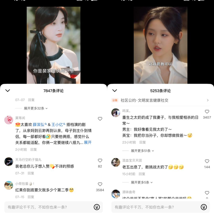 更重要的是,不同于长剧CP在走红后的拆伙提纯,短剧CP在当下给了观众更多的“情绪价值”:要二搭有三四五六搭,甚至十搭、三十搭,都不是梦;要磕糖,有当事人、经纪公司、平台主动下场产糖,更有各种“真情侣”保真糖,主打一个宾主尽欢。