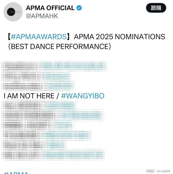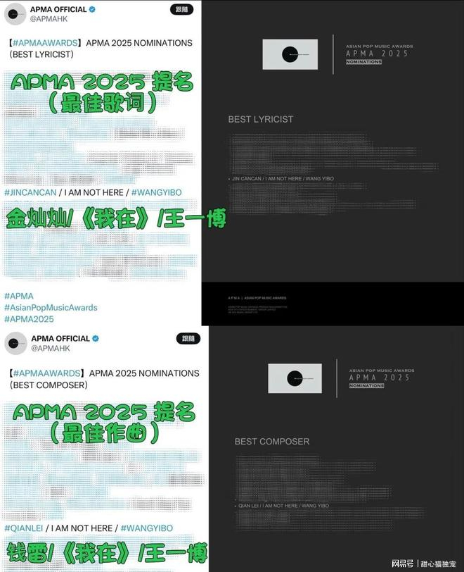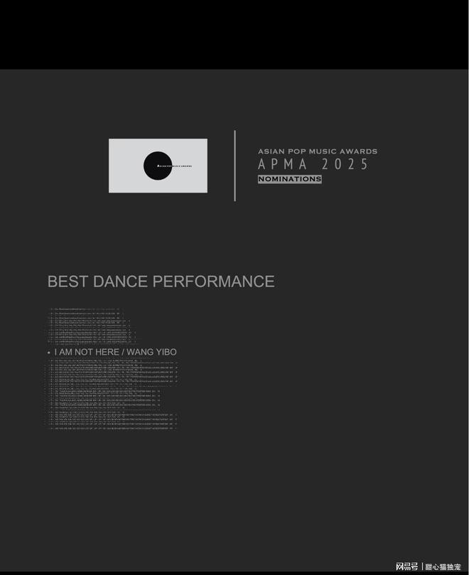 王一博的《我在》在APMA亚洲流行音乐大奖上简直太争气了,一口气揽下四项提名!最佳舞台表演、年度歌曲、最佳歌词、最佳作曲,这四个重磅奖项的提名资格,足以说明这首歌的分量有多重。