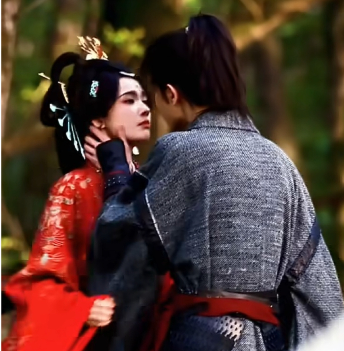 两场戏最出圈。一场是“林间拉扯深吻”——张凌赫饰演的草根帝王“萧厉”一把拽回林允饰演的亡国公主“温瑜”,扣颈俯身。190cm对169cm的身高差,让这场戏的掌控感直接拉满。