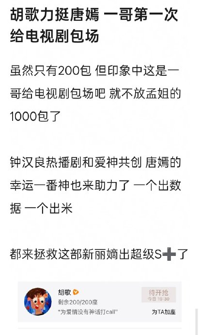 胡歌同步在腾讯视频发起“云包场”活动——自掏腰包包下200个免费观看名额,主题命名为“为爱情没有神话打call”,邀请观众直接通过平台入口免费观剧。这一动作具有三重突破性意义: