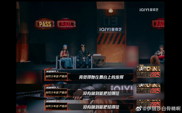 与万妮达合作的《Underdog》公演舞台成为节目高光时刻。严浩翔以快嘴技术、精准节奏把控和烟嗓声压引爆现场,28秒个人段落“我的视野再放大——通杀”彰显王者态度。舞台设计融入唱跳、走位调度与斯坦尼康镜头互动,墨镜意外滑落被他利落接住转为即兴动作,应变能力获赞“舞台掌控力刻进DNA”。乐评人评价其台风“从《正轨》到《Y》的全面进化,是超级巨星雏形”。