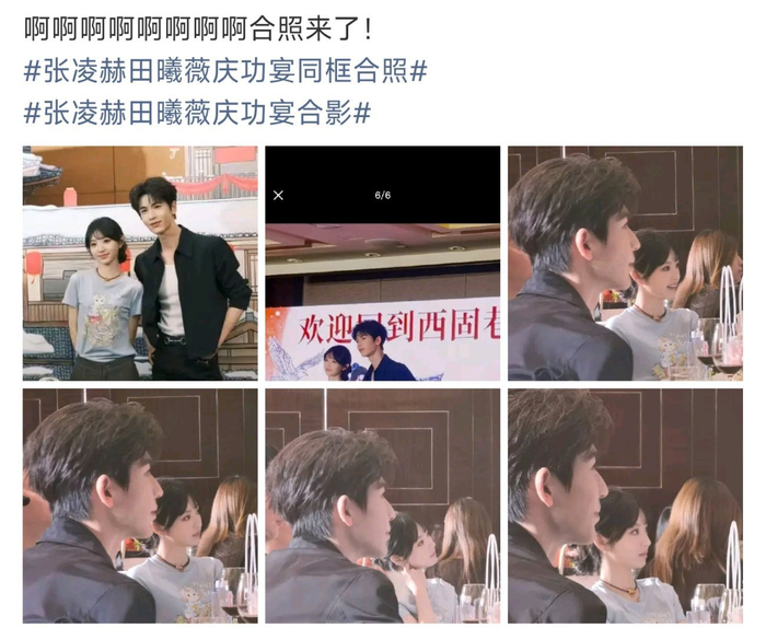 #张凌赫田曦薇庆功宴合影# 公费结婚既视感!耳尖泛红的张凌赫也太可爱了!这合影可以呀!