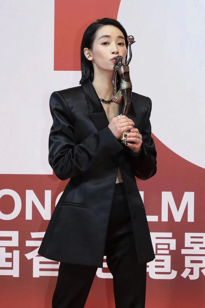 手捧最佳女主角奖杯的刘雅瑟