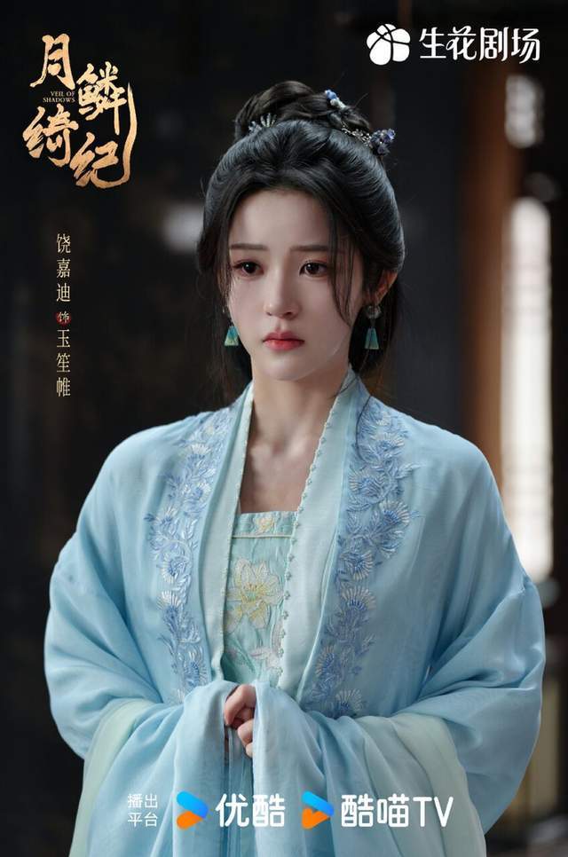饶嘉迪近期在古装新剧《月鳞绮纪》饰演洛安城知名绣娘与名门闺秀「玉笙帷」,凭借清冷忧郁的破碎感演技获得极高讨论度,她不仅是全剧最出圈的女配角,还被大批网友们封为「人间白月光」。