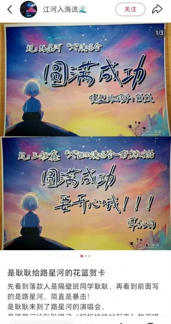 #娱乐[超话]##耿耿来到了路星河的演唱会##谭松韵给王栎鑫演唱会的花篮贺卡# 平行时空的耿耿和路星河 ,谭松韵那天还送了花篮
