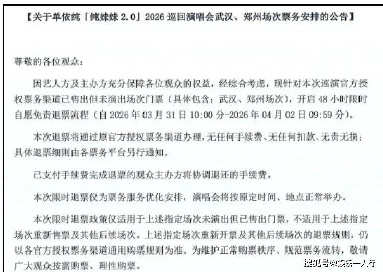 这种恐慌和观望并非空穴来风。就在票价跳水的郑州场开演前不到一个月,主办方为包括郑州在内的多个场次,开启过一个为期48小时的“自愿免责退票通道”。这个在演唱会行业极其罕见的操作,直接将所有人的记忆拉回到了2026年3月底那场席卷社交网络的风波。