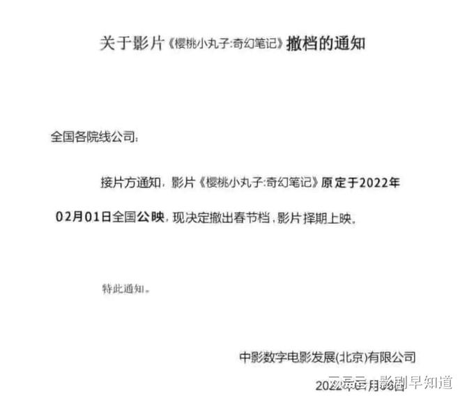 3D动画电影《樱桃小丸子:奇幻笔记》原本定于2月1号(农历春节)上映,近日这部影片也宣布撤档,官方并未告知何时上映。