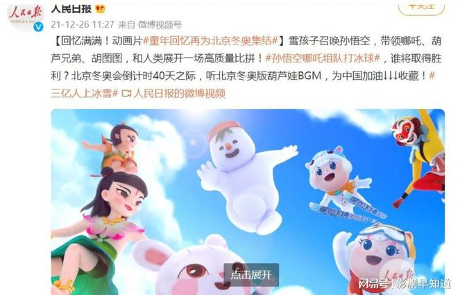 冬奥会特别电影《我们的冬奥》原定1月15号上映,延期到2月19日,选择在北京冬奥会闭幕式前一天上映。这部电影由上海美术电影制片厂制作,全部选用国产卡通形象,冬奥会、残奥会吉祥物冰墩墩,雪容融,齐天大圣,哪吒,葫芦娃,大耳朵图图。