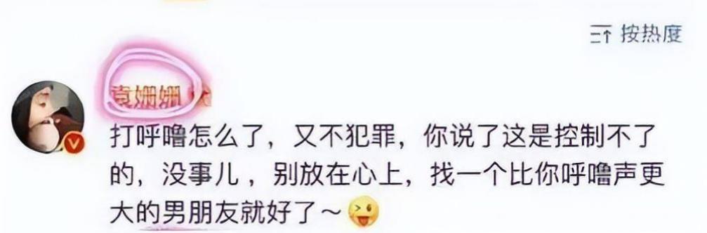 可袁姗姗自己摸过来评论,又来一句“打呼噜怎么了”,直接坐实了张小斐打呼的“罪名”。那时候张小斐还是个小透明,解释没人听,只能咽下这口气。