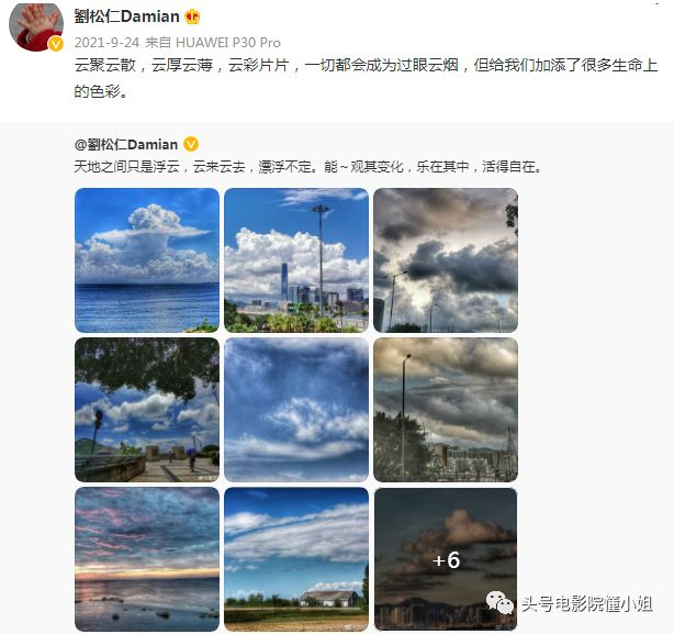如今,刘松仁晒出近照,状态不错,这两年,他的心态也变得非常开阔,常常会发一些看天空、看云朵的照片。