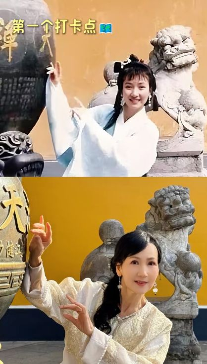 日前,新白娘子传奇剧组在镇江开演唱会,陈美琪在演出结束后,重游当地的金山寺,在多个当年的拍摄位置,再次摆出昔日的Pose打卡,跟当年的剧照对比,外貌上相差不大。