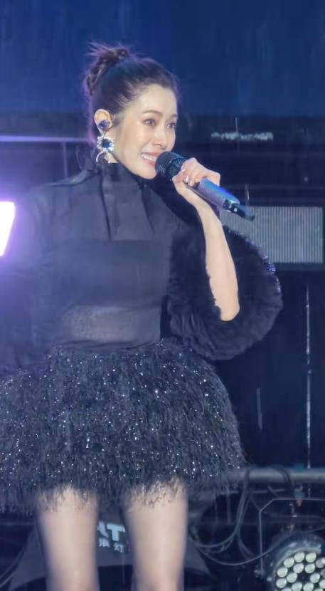 从现场曝光的画面看,徐怀钰状态堪称“元气满满”。黑色毛绒短裙造型,被雨水打湿后更添几分真实与力量感,湿发与交织的灯光营造出震撼又感人的舞台效果。