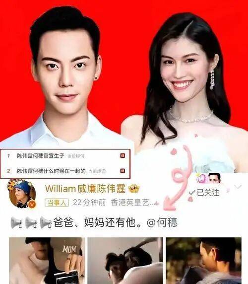 此后,陈伟霆在上海一场时装电影酒会,认识了超模何穗!两人谈了五年恋爱,终于在2025年10月18日宣布结婚生子!