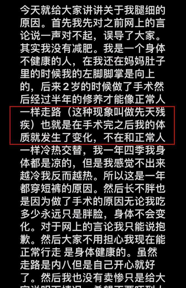 不过这并不是唯一的原因,他曾在自述透露,他自小就不是一个健康的人,还在妈妈肚子里的时候,左脚脚掌就是向上的,两岁多噩时候做了手术,终于和正常人一样走路,但却带来了其他的情况,一年四季身体都是凉的,而且他感觉不到冷,反而是越来越热,这也是其为什么一年四季穿短裤的原因之一。