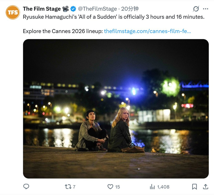 #TNABO# 滨口龙介戛纳主竞赛新片《突如其来》时长3小时16分钟