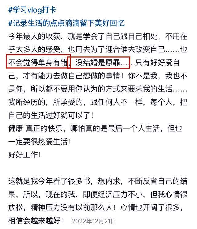 翻看其过往分享的生活照不难发现,她平常都不喜欢穿高跟鞋,喜欢吃腐竹,闺蜜聚餐也只是简单的馄饨和炒粉,苛刻的日常,这难道就是努力的意义吗?努力不就是为了好生活吗?