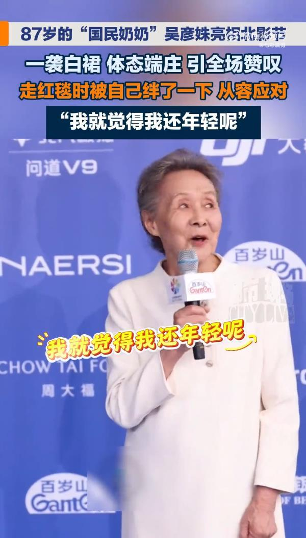 当晚的吴彦姝,一头未染的银发自然垂落,身穿简约白色长裙,行走时脊背笔直、肩颈舒展,全程没有一丝驼背的迹象。有观众形容她的背影“像三十岁”,直到她转过身来,才让人惊觉这份优雅已经沉淀了八十七年。