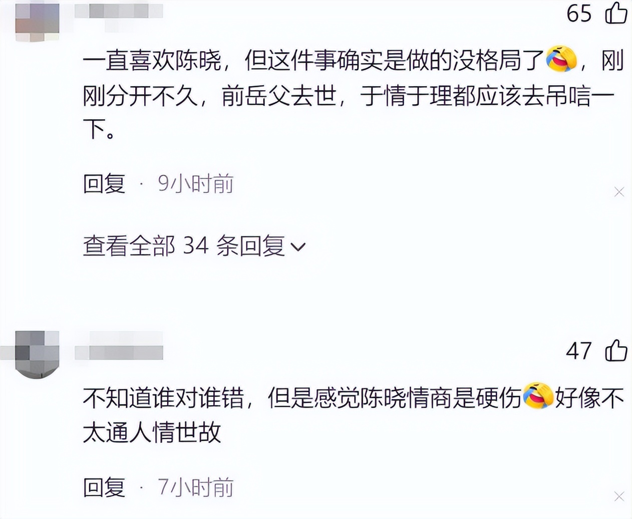 这件事一出,陈晓路人口碑大幅下跌,不少网友都指责他太过薄情冷淡。