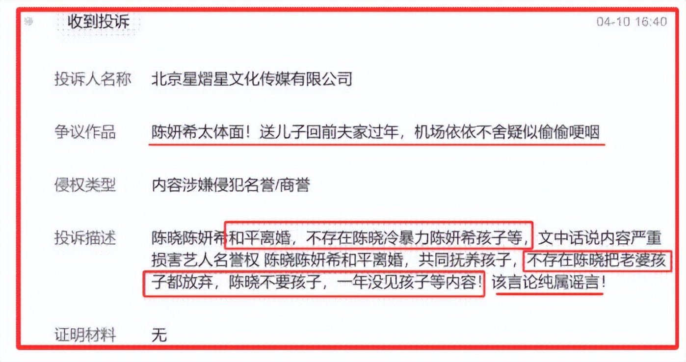 陈晓团队大量投诉了有关于“陈晓冷暴力妻儿”、“一年没见孩子”、“未出席前岳父葬礼”等谣言。