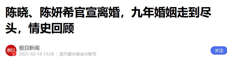 1. **陈晓和陈妍希的初遇与合作** , 陈晓和陈妍希因合作电视剧《神雕侠侣》相识相知,陈妍希饰演小龙女一角,尽管陈妍希的表演引发了不少争议,但两人在合作中建立了初步的感情。,2. **恋情曝光与婚礼** , 2015年,陈晓和陈妍希的恋情被曝光并公开承认,2016年,陈晓浪漫求婚并定制小龙女主题雕像,2017年领证结婚,婚礼成为娱乐圈话题,2018年,两人迎来儿子陈睦辰。,3. **婚姻中的隔阂与离婚** , 2023年,两人关系降至冰点,离婚传闻不断,2025年,两人正式官宣离婚,婚姻结局不如意。,4. **网暴与法律诉讼** , 陈妍希起诉陈晓的大粉,要求赔偿4万元,法院判决陈妍希胜诉,但陈晓的大粉拒不执行,反而挑衅,引发更多争议。,5. **陈晓与赵丽颖的往事** , 陈晓曾与赵丽颖因《陆贞传奇》走红,两人关系亲密,但陈晓后来否认炒作,显示他在感情上的不担当。,6. **陈晓的婚姻动机** , 陈晓提到自己希望给父母孙子孙女,可能是家庭压力导致的婚姻,婚姻中他较为沉默,尤其在陈妍希遭遇网暴时,他的回应较少。,7. **事件反思** , 离婚后的双方行为不体面,尤其是陈晓,显示出公众人物在面对压力时的脆弱和复杂。,这段感情的故事揭示了爱情与婚姻的复杂性,公众人物面对压力和挑战的应对方式,以及家庭和责任对个人选择的影响。