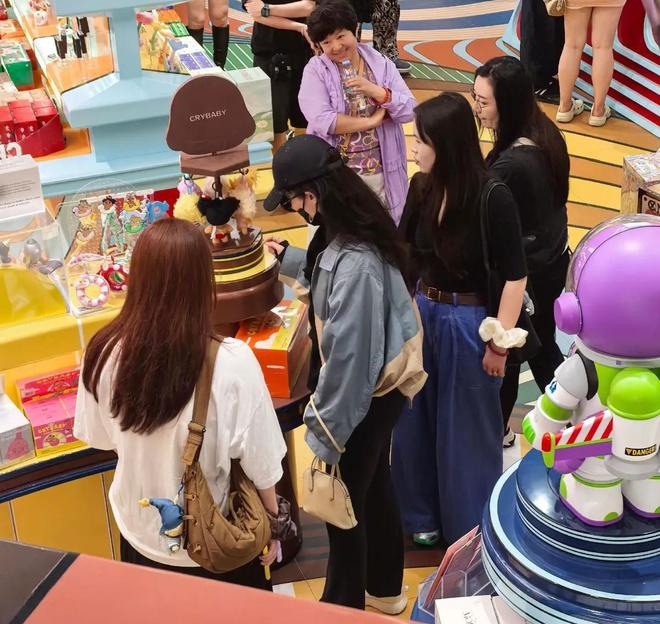 她在泡泡玛特的店里逛了很久,看的也出真的很喜欢这些小玩偶了,她拎着杏色的包包,穿着黑色的休闲裤,在认真的看哭娃,旁边的助理都在旁边耐心的等待她。