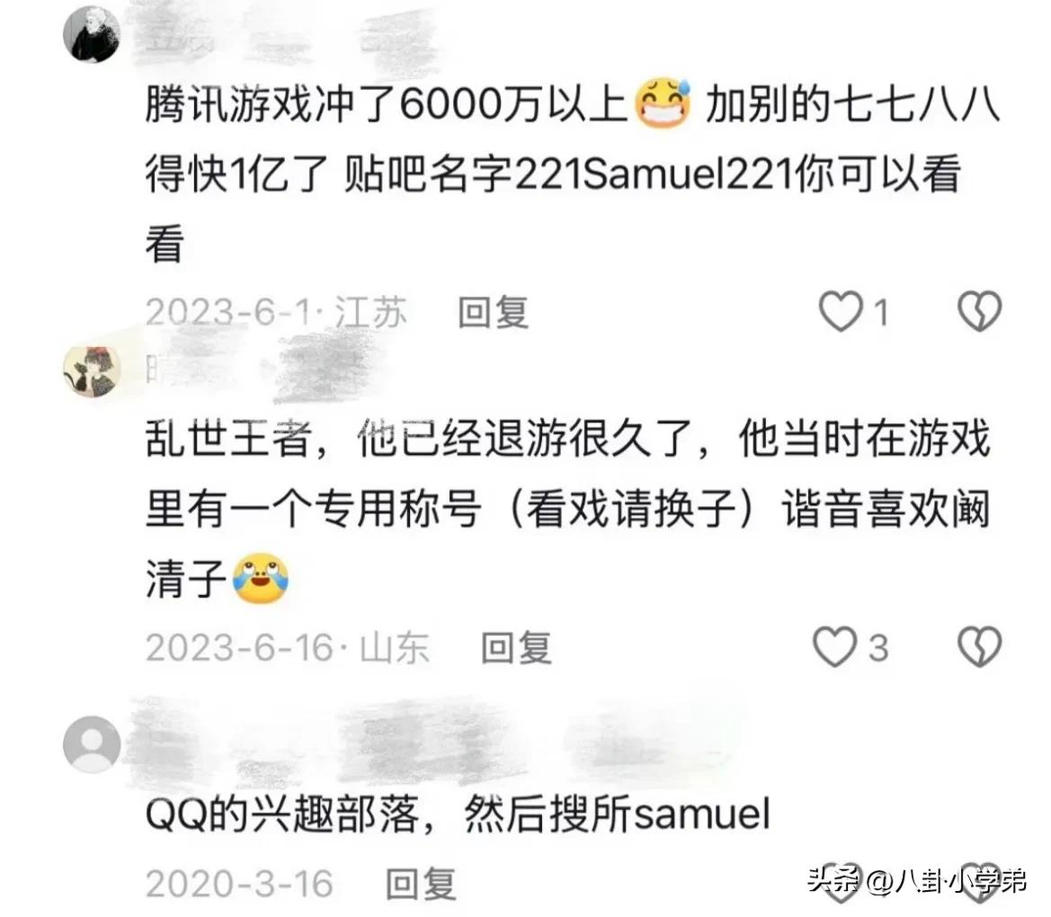 还是眼尖的网友,发觉了昵称似曾相识,早年在游戏圈就是一掷千金的“大佬”,前前后后消费达一个小目标。