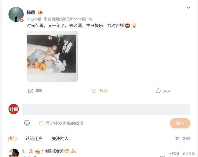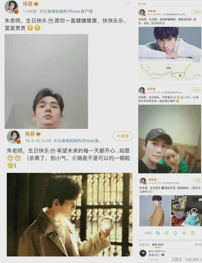 4月16日,杨蓉的社交媒体上准时出现给朱一龙的生日祝福。朱一龙在下面回应“谢谢杨老师”。