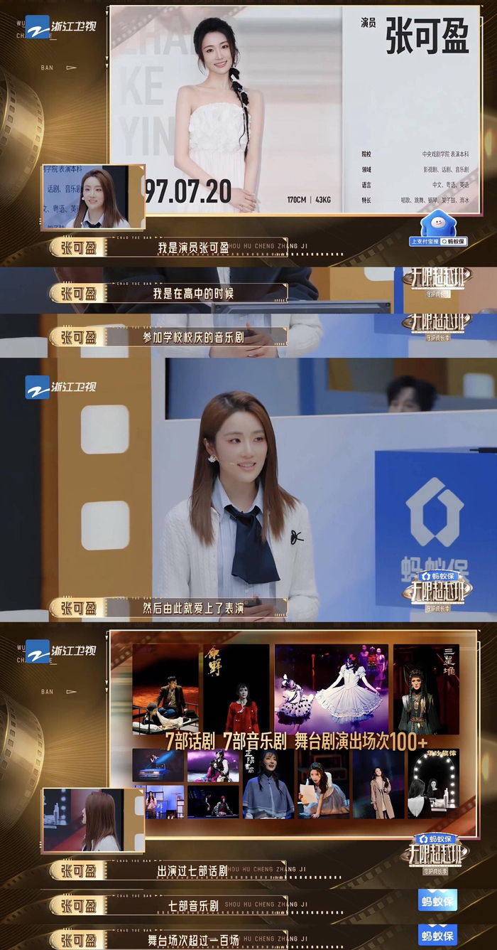 回顾张可盈的演艺道路,踏实上进、低调努力是对她最好的总结。从16岁第一次演音乐剧起,她就扎根舞台,磨练演技。《阿尔兹记忆的爱情》《万白》《原野》《悲惨世界》《三星堆》《当爱已成往事》《洗衣服》等一部部音乐剧、话剧的打磨,让她练就了扎实的台词功底和极强的舞台表现力。这份沉淀,也让她在影视和综艺表演中,总能展现出远超同龄人的专业度。