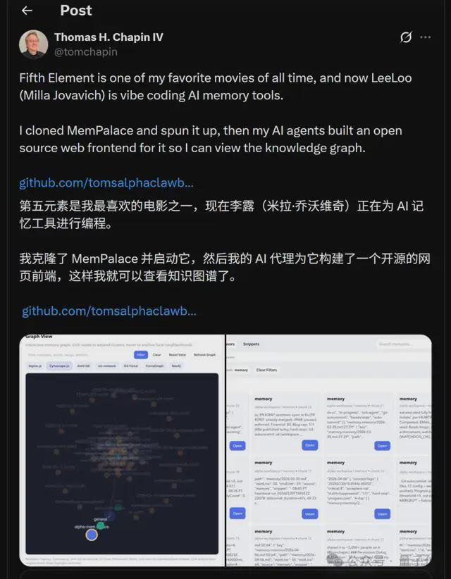 也正因如此,她和Ben希望通过开发MemPalace这样的系统,可以帮助开发者更好地利用已有知识,从而创造新的东西。