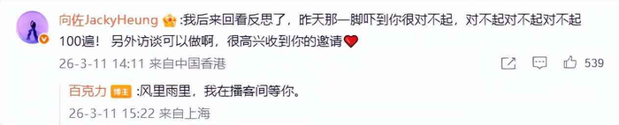 第二天百克力发了视频,说当时愣住零点零一秒,脸上都僵了,但马上笑起来,还说这反倒成了节目看点,他没怪向佐,还强调相信向佐不是故意的,向佐在评论区连回三句对不起,态度放得很软,可一句没解释动作为什么失控,一个把意外当素材用,一个只认错不说原因,两人反应差别挺大。