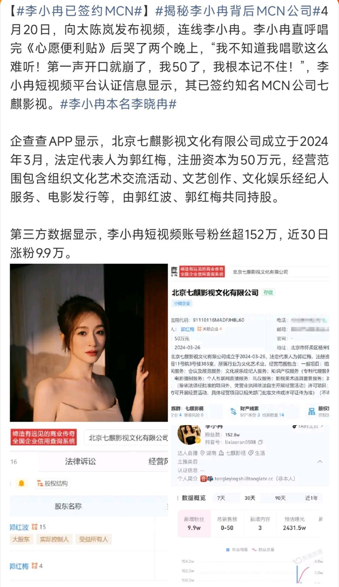 #李小冉已签约MCN#女神李小冉正式签约七麒影视MCN,乘风热度加持,一周涨粉近10万!