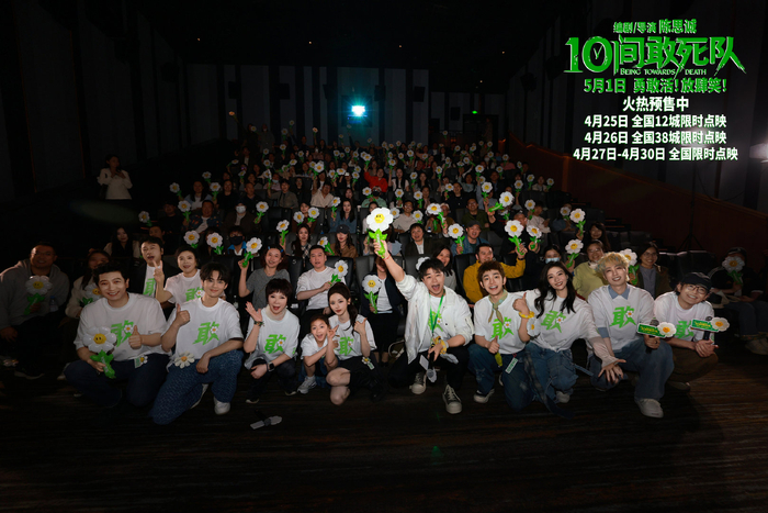 电影《10间敢死队》由陈思诚编剧、导演,蒋龙、齐溪、杨超越、王子川、张弛、曹炳琨、黄毅、叶泉希领衔主演,倪大红、蔡明、田雨、丁嘉丽、成泰燊特别主演,六兽、艾丽娅、童漠男、韩彦博、张磊、刘坤、张喜前、魏翔、陈祉希、梁植、易小星、杨玏、甘剑宇、鄂靖文、包贝尔、孙艺洲、吕星辰、雷淞然友情出演,由北京壹同传奇影视文化有限公司、上海猫眼影业有限公司、昆山市周庄双桥电影制片有限公司出品。影片将于4月25日14:00-16:00在12座城市开启点映(北京、长沙、长春、哈尔滨、济南、青岛、沈阳、石家庄、深圳、天津、武汉、西安),于4月26日14:00-16:00在38个城市扩大点映(北京、成都、重庆、常州、长沙、长春、东莞、大连、福州、佛山、广州、贵阳、杭州、呼和浩特、合肥、哈尔滨、济南、昆明、兰州、宁波、南宁、南京、南昌、青岛、深圳、上海、苏州、石家庄、沈阳、天津、太原、无锡、武汉、温州、乌鲁木齐、厦门、西安、郑州),4月27日-30日每天18:00-21:00开启全国点映,将于5月1日全国上映,影片预售已开启,敬请期待!