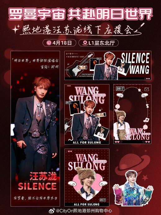 后援会在万象城L1中庭打造15米环形花墙,以"明日世界"巡演主题为核心,将音符、流光与郑州地标剪影结合。粉丝凭演唱会门票可领取限定歌词本与角色卡,解锁"王子/公主/恶龙"故事线沉浸体验。