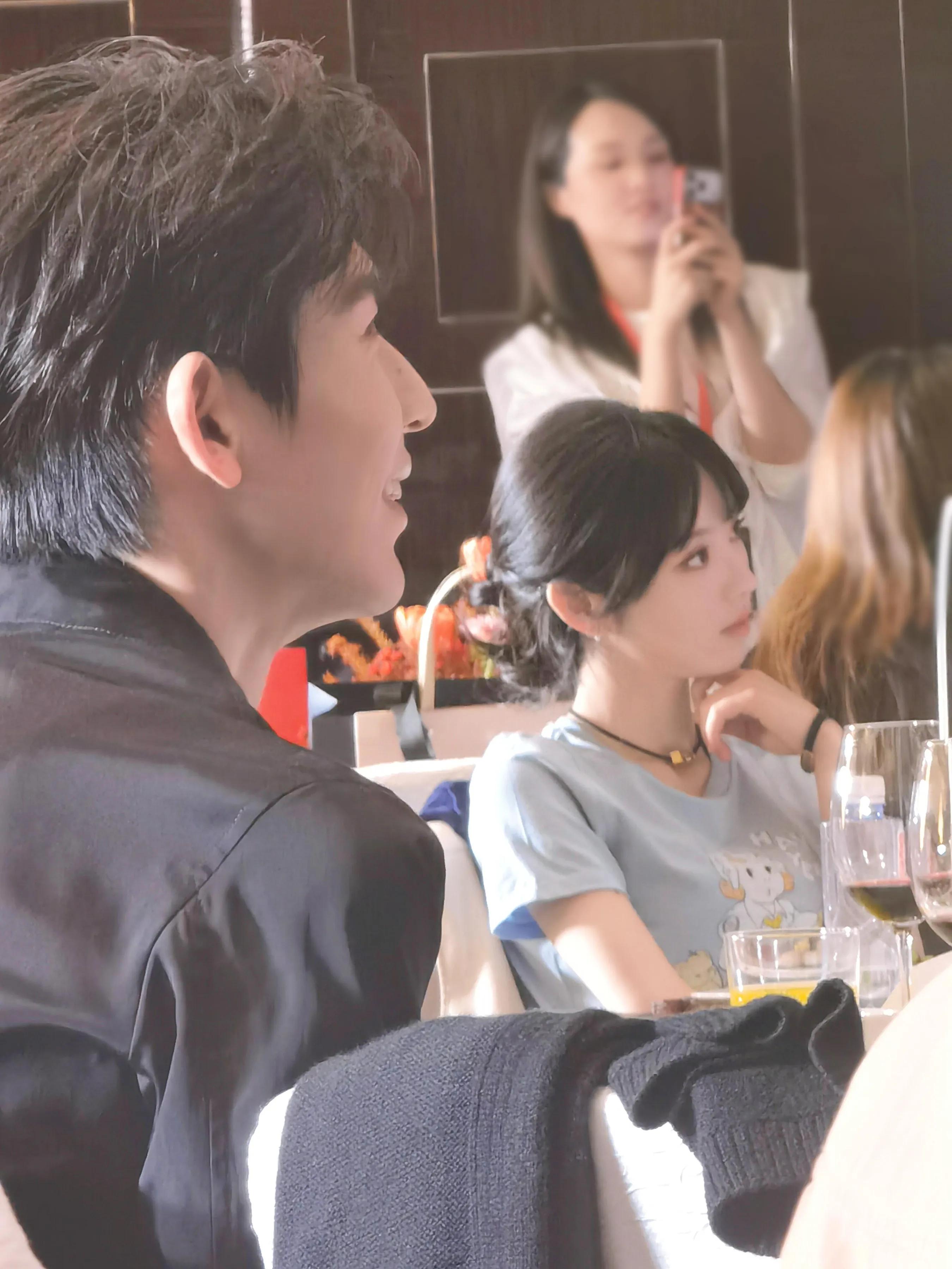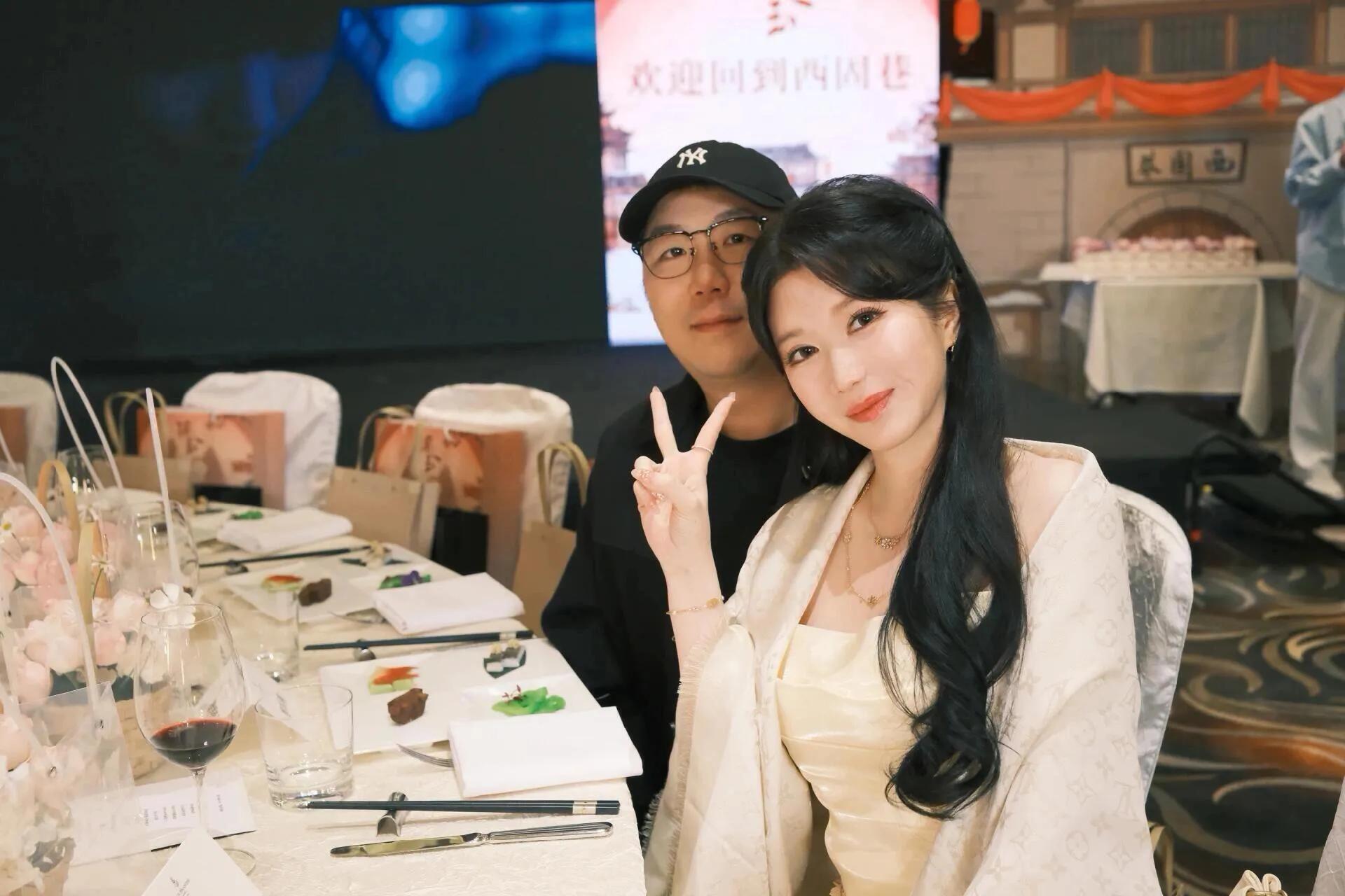 在庆功宴的现场,还看到导演的妻子,她穿着淡黄色礼服打扮的很温柔,她的脸精致小巧,比女主角田曦薇还漂亮。曾导演和爱妻在现场甜蜜合影,两人很般配。曾导演竟然有这么漂亮的小娇妻,他戏里戏外的审美都是顶级的。