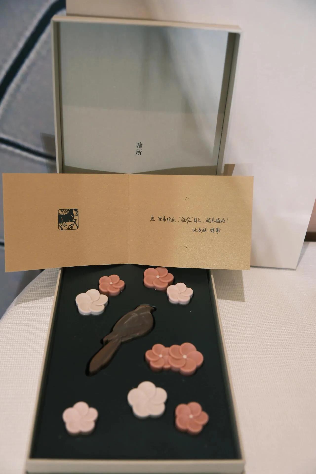 张凌赫对这次庆功宴很用心,他特地准备了唐所的点心礼盒还有漂亮的花束,这些点心好吃又很有意境,他的品味真好。