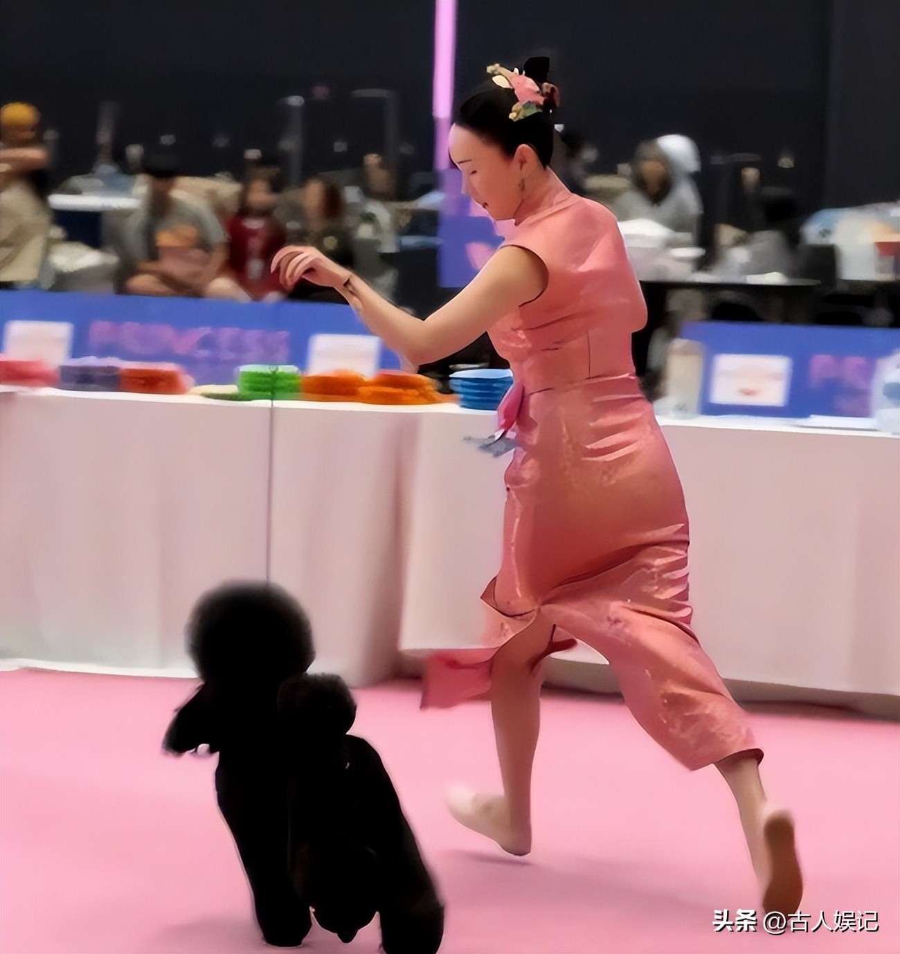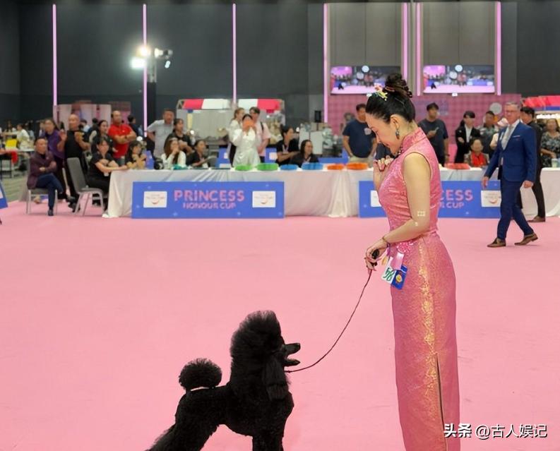 2026年4月,泰国公主杯国际犬展上,她穿着一身蜜桃粉色紧身旗袍,全程素颜。